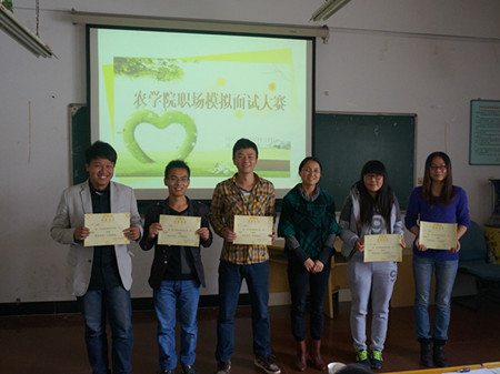 比赛分为现场笔试和面试两个部分。现场笔试部分主要考察同学们的言语表达理解、数量关系、类比推理、逻辑判断和资料分析等相关内容;面试分为自我介绍、必答题和职场故事编说三个环节,选手们用生动的语言表、敏捷的思维、沉稳的形象赢得在场观众的掌声。最终来自2011级农学专业的刘心悦同学获得本次大赛的一等奖。