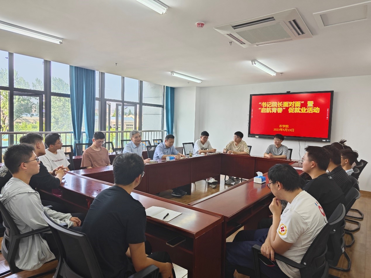 本网讯 5月19日下午,农学院在朝阳楼206会议室举办“书记院长面对面”暨“启航青春促就业”座谈会,学院党委书记洪志生、党委副书记吕大鹏与毕业生亲切交流,了解和掌握学生就业动态,帮助学生解决思想问题和实际困难。