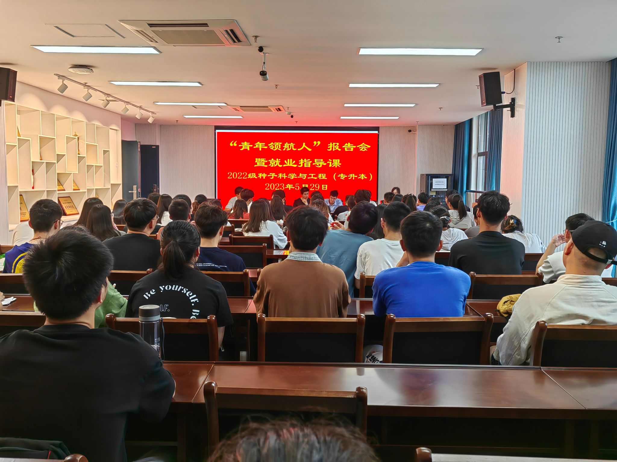 本网讯 5月29日下午,农学院2022级种子科学与工程(专升本)专业在朝阳楼202会议室召开青年领航人报告会暨就业指导课。报告会由辅导员彭琼琼主持,农学院青年宣讲团成员2021级种子科学与工程(专升本)考研代表袁倩倩、陈良朋,考公考编代表方堃、王子艺、赵璇参加会议并分享学习经验,全体2022级种子科学与工程(专升本)专业同学参加此次报告会。