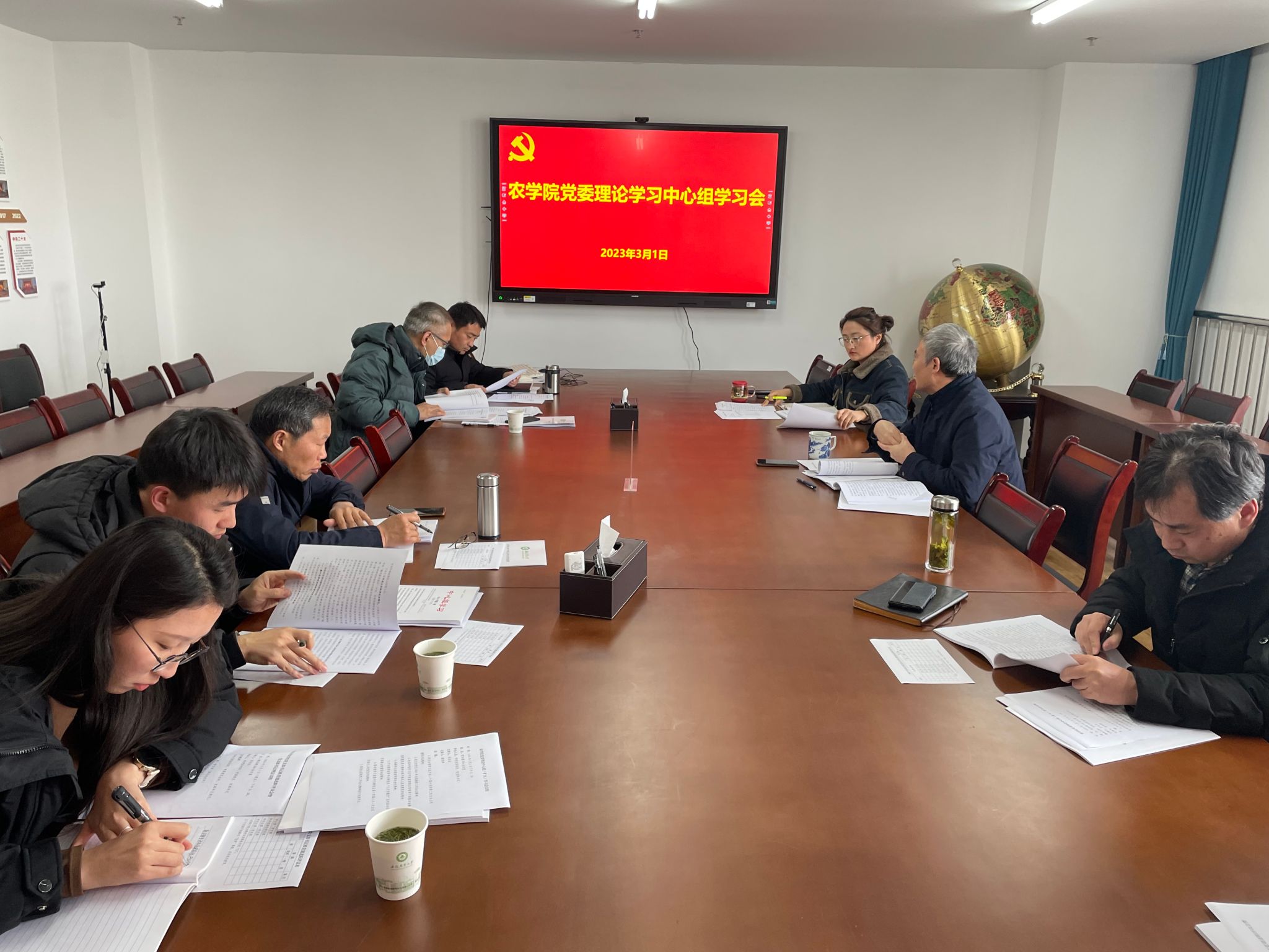 本网讯 3月1日下午,农学院在朝阳楼206会议室召开党委理论学习中心组专题学习会。院领导、党委委员、各党支部书记参加会议,会议由院党委书记洪志生主持。