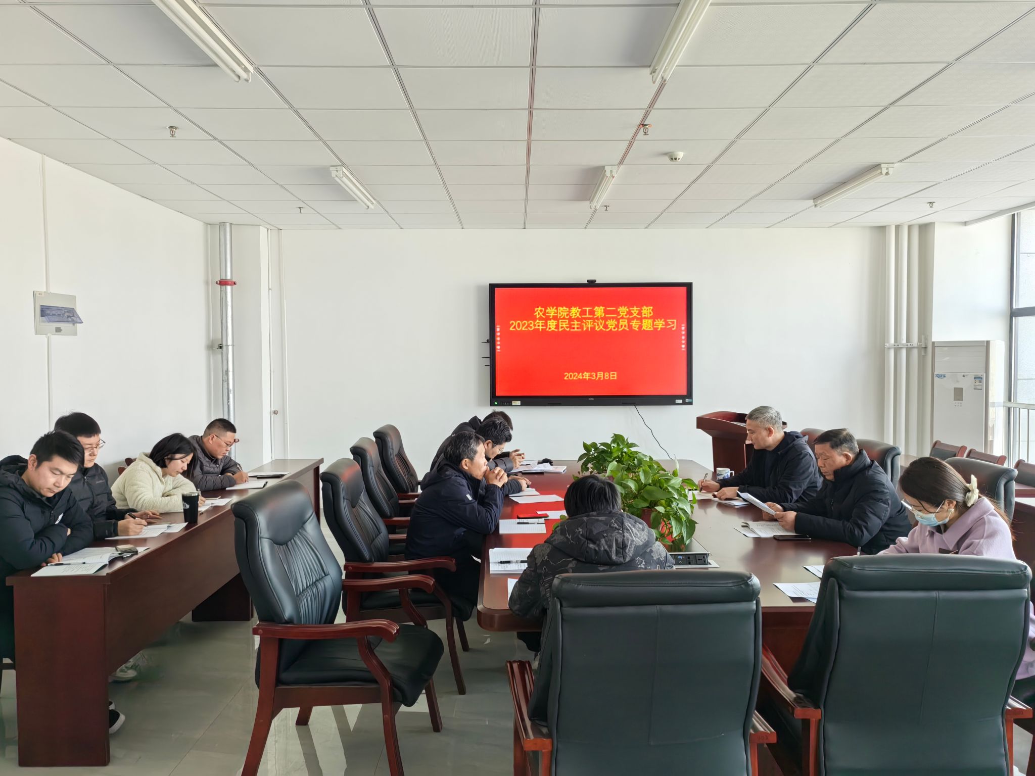 本网讯 3月8日下午,农学院教工第二党支部党员齐聚朝阳楼402会议室开展2023年度民主评议党员专题学习。会议由支部书记黎珉主持。