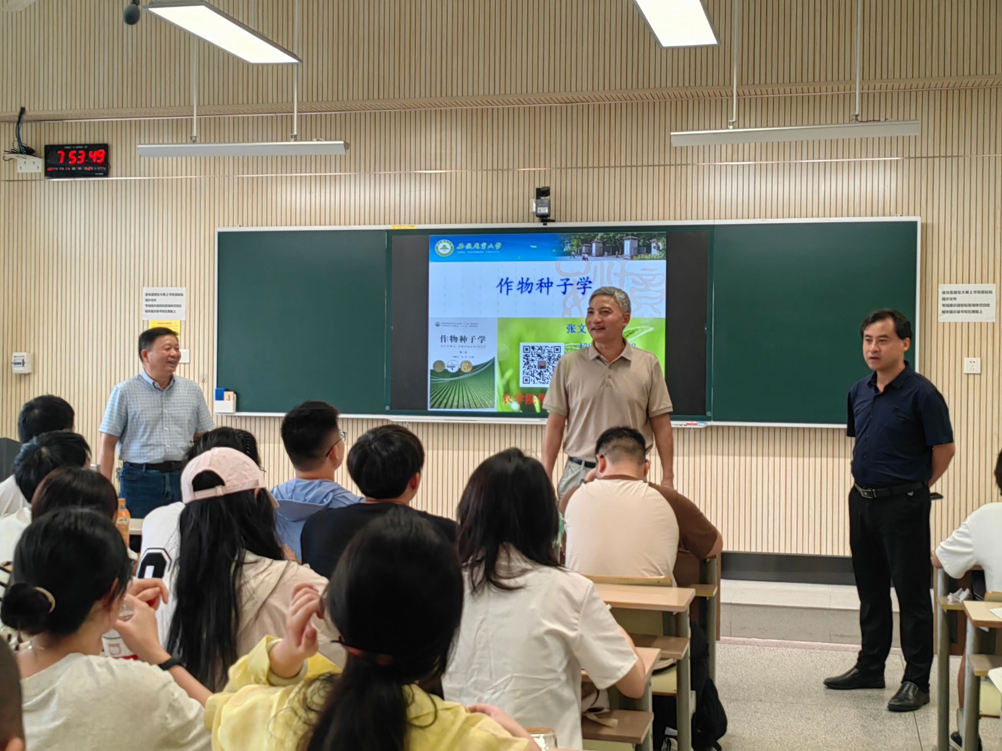 农学院专任教师张文明、黄婷、朱英华、常成、王成雨、陈翔、柯健等,新学期一二节课分别给各农学、种子科学与工程及外专业各年级学生开授专业课和公共基础课,授课老师均提前半小时左右到教室做好多媒体课件调试等开学第一课各项准备,各班级学生也早早到达课堂开启新学期新征程学习之路。农学院党委书记洪志生赞扬了农学院老师爱岗敬业的优良传统,对同学们良好的学习状态表示满意,农学院院长武立权希望同学们要进一步拓展知识学习的深度和广度,扎实学好专业课,未来在就业考研等方面能更加轻松自信。