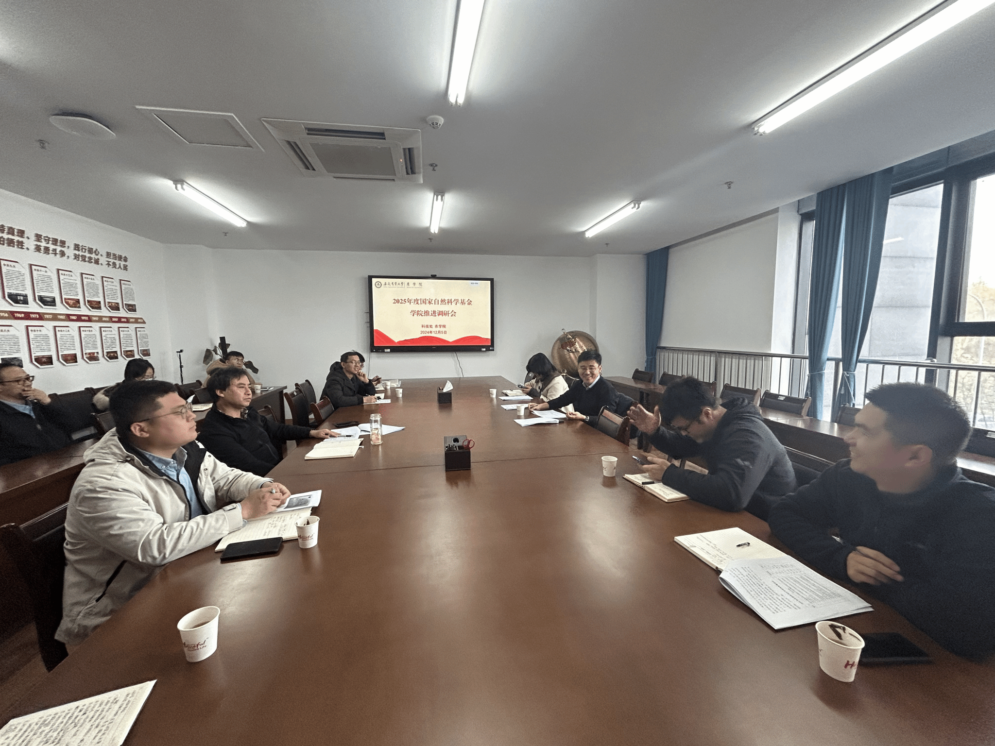 武立权代表学院对科技处为学院基金申报工作的指导表示感谢,简要介绍了学院近年来科研人才引进以及科研发展现状情况。余恩介绍了我院2025年度国家自然科学基金申报的情况。