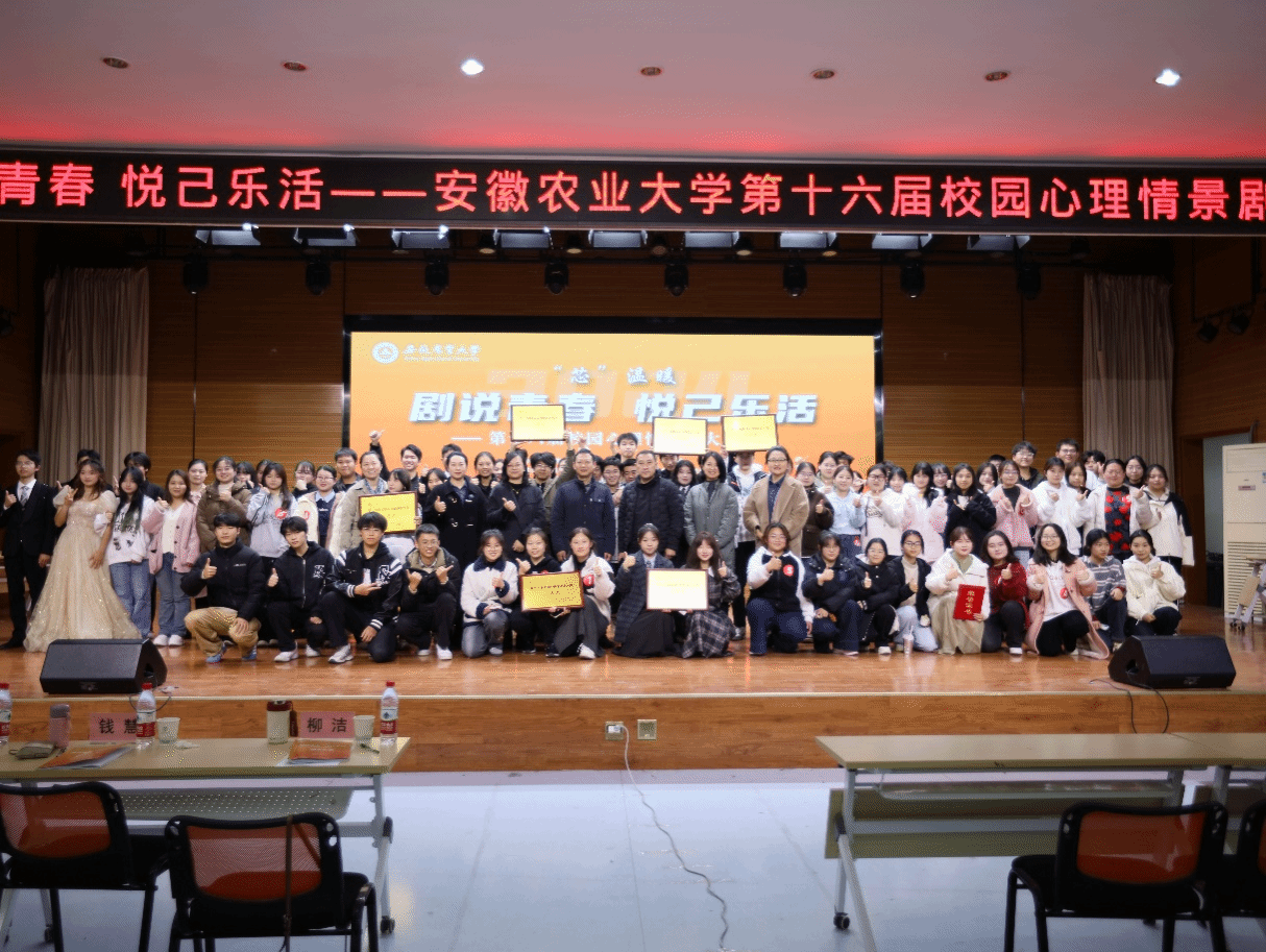 本网讯 12月5日下午,由校学工部(处)主办,农学院承办的校第十六届“剧说青春 悦己乐活”校园心理情景剧大赛决赛在欣苑四楼大学生活动中心圆满落幕。学工部(处)处长任琪出席。党委研究生工作部副部长吕剑秋,学生处副处长吕大鹏,党委宣传部副部长夏晓昀,教务处副处长钱慧,校团委副书记柳洁担任评委。我院心理情景剧《扶光愈“农”,破“网”而出》在决赛中荣获校三等奖,学生胡涛获最佳男演员奖。