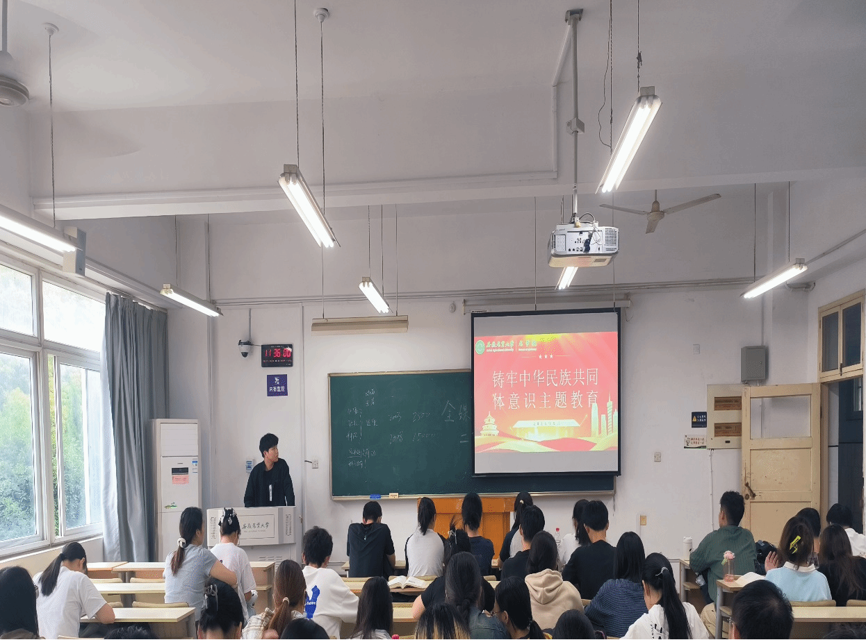 会上,各班级辅导员向学生阐述了新时代新征程“铸牢中华民族共同体意识”的核心内容和重大意义,助力学生深入理解铸牢中华民族共同体意识的理论来源,引导学生厚植家国情怀,努力做铸牢中华民族共同体意识的坚定拥护者、有力宣传者和忠实践行者。