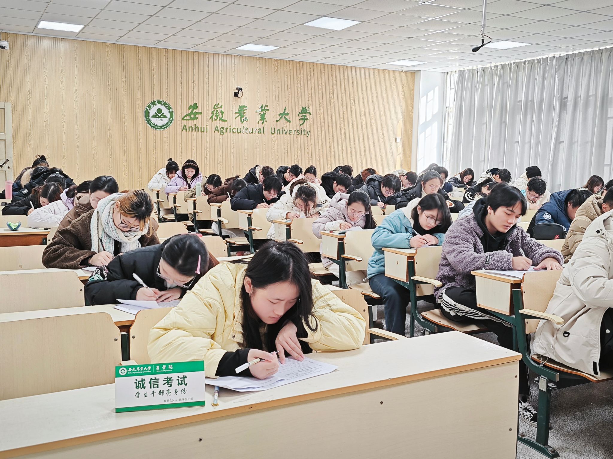 考试过程中,所有参与亮牌示范的学生骨干主动将“诚信考试示范牌”席卡置于桌前醒目位置,以亮明身份的方式承诺诚信考试。同时,农学院学生分会对考试周期间的考场纪律及学生骨干亮牌示范情况进行检查和督促,进一步保证了活动成效。