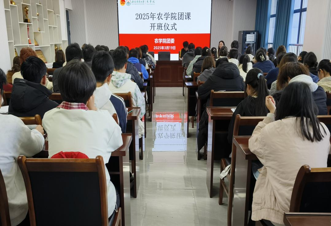 本网讯 为深入贯彻落实习近平总书记关于加强新时代团员队伍先进性建设的重要指示,深入推进全面从严治团,优化团员队伍规模,提高发展团员质量。3月19日下午,农学院在朝阳楼202会议室举办2025年团课开班仪式,学院90多名入团积极分子参加团课学习。