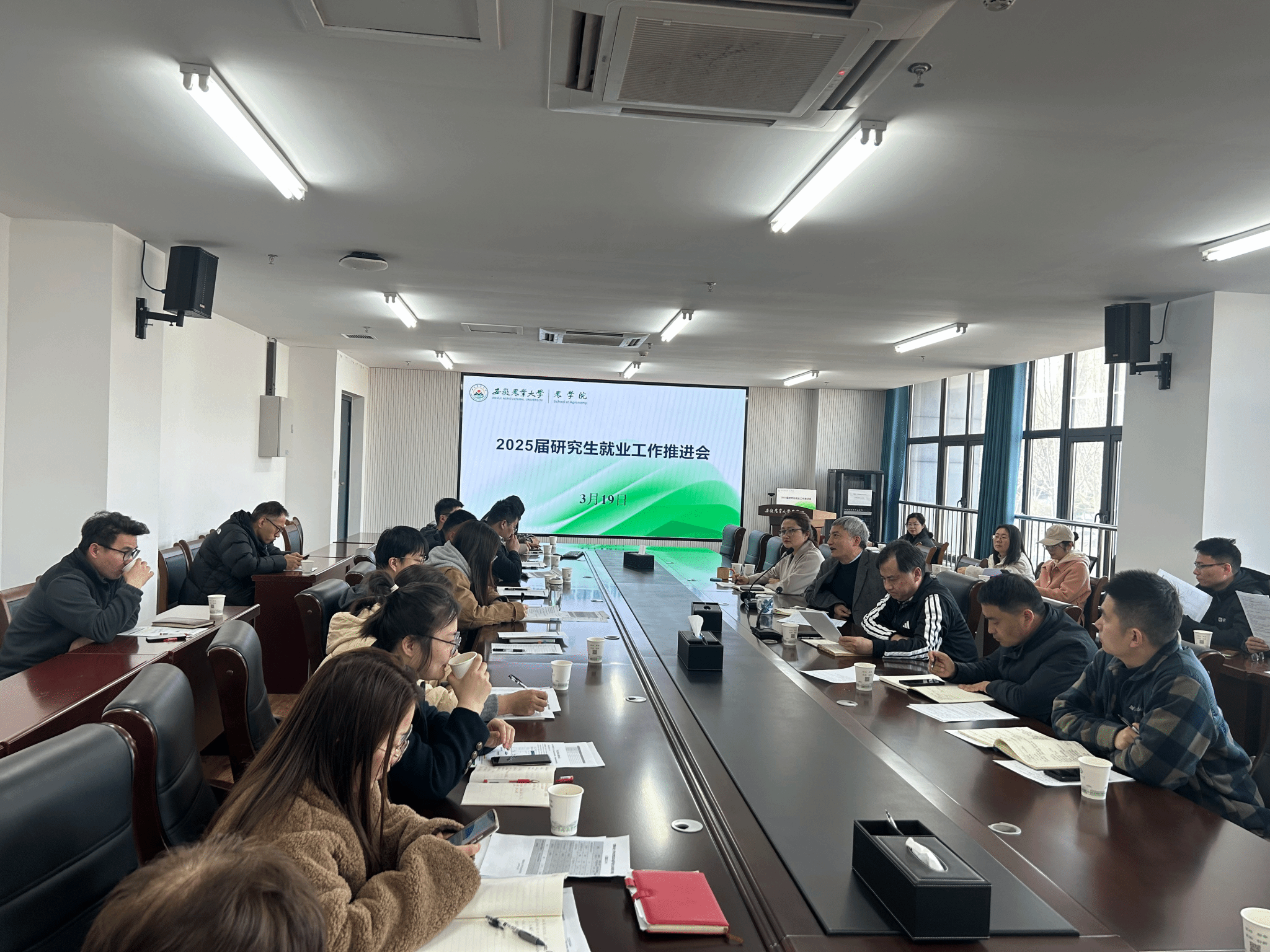 本网讯 为深入贯彻落实党的二十大精神,纵深推进2025届毕业生就业"稳就业""促就业"决策部署,3月19日下午,农学院在朝阳楼208会议室召开研究生就业工作专项推进会。院党政领导班子成员、各系主任、硕博导师代表、毕业班辅导员参会。会议由党委副书记、纪委书记冯峰主持。