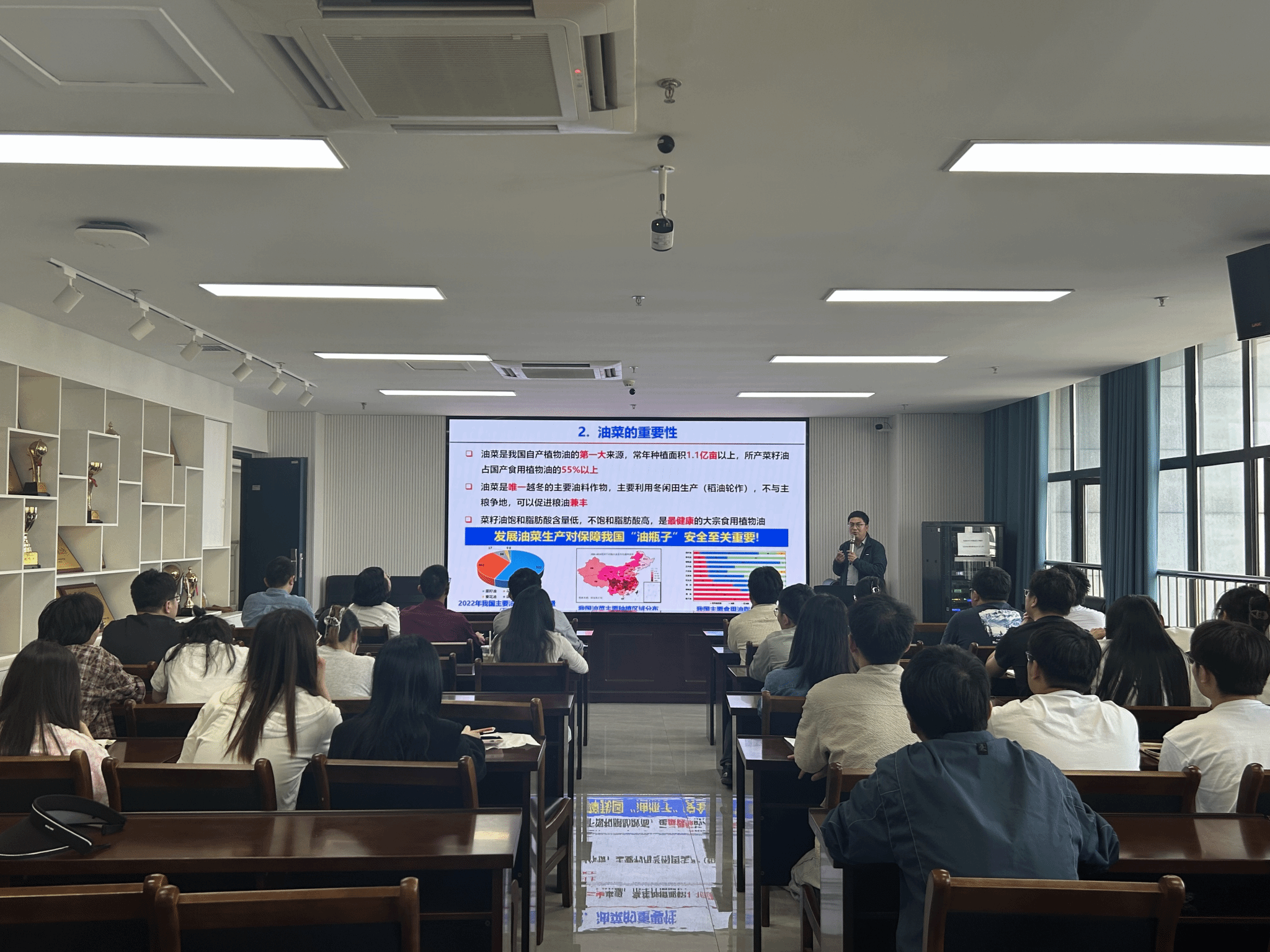 蔡光勤以“油菜种质资源研究进展与挑战”为题,从加强种质资源保护与利用,加强种子库建设为切入点;从种质资源保护、种子库建设与国家战略需求等维度,深度剖析我国油菜种业创新路径,为保障粮油安全提供科技支撑。蔡光勤强调,农业科技须服务国家“油料产能提升”战略,通过生物育种、智能设计等技术破解种源“卡脖子”难题。
