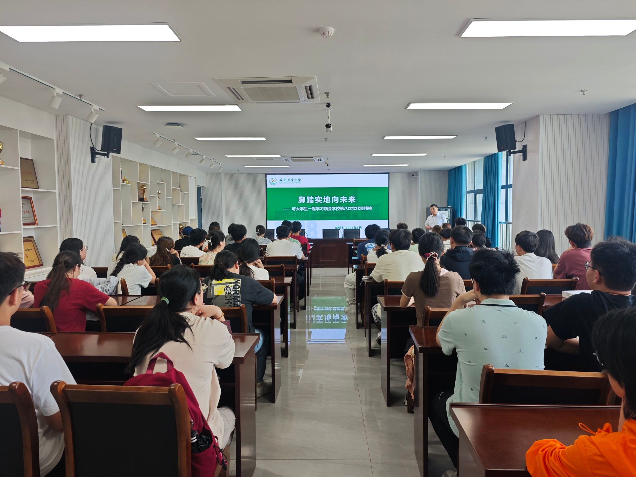 本网讯 6月4日中午,安徽农业大学党政办公室主任戴照力应邀为2024级农学学子开展“脚踏实地向未来——与大学生一起学习领会学校第八次党代会精神”专题辅导报告。