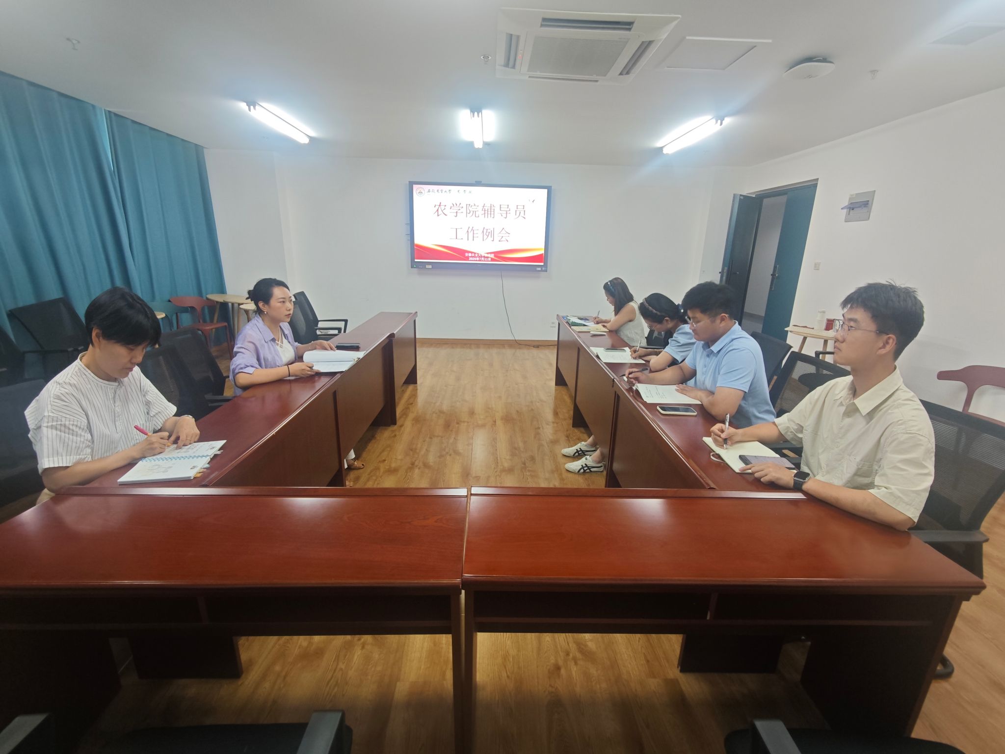 本网讯 7月11日上午,农学院在朝阳楼212会议室召开辅导员工作例会,总结近期重点学情,部署下一阶段核心工作。学院党委副书记、纪委书记柳洁主持会议,全体专职辅导员参会。