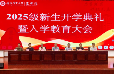 本网讯为启新程育英才为兴农脉聚新力。9月15日晚7时,农学院2025级新生开学典礼暨入学教育大会在图书馆第一报告厅举行。学院党政领导班子成员、各系部主任、2025级本科生学业导师及全体本科生辅导员齐聚现场,与全体本科新生共同开启“新农人”的大学成长征程。大会由院党委副书记柳洁主持。