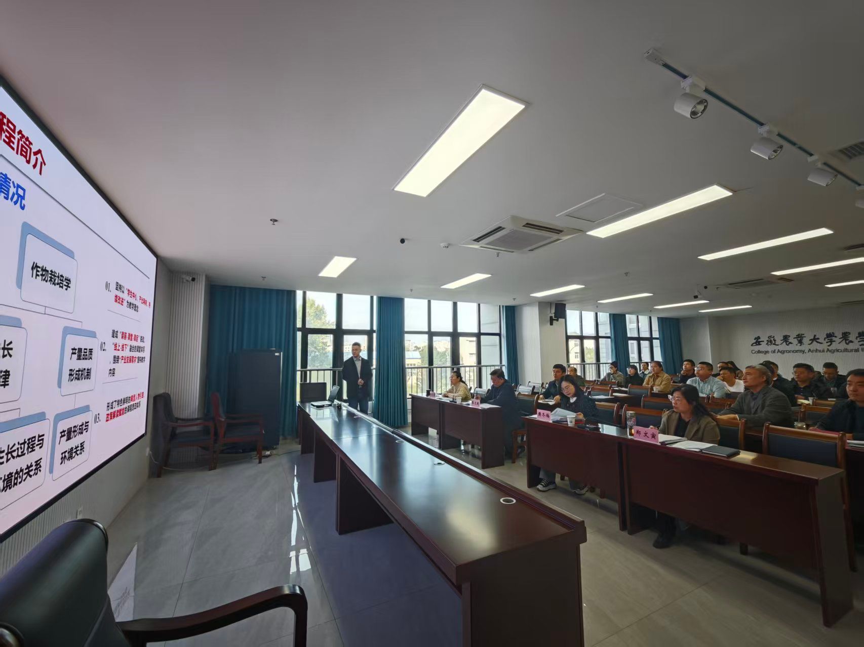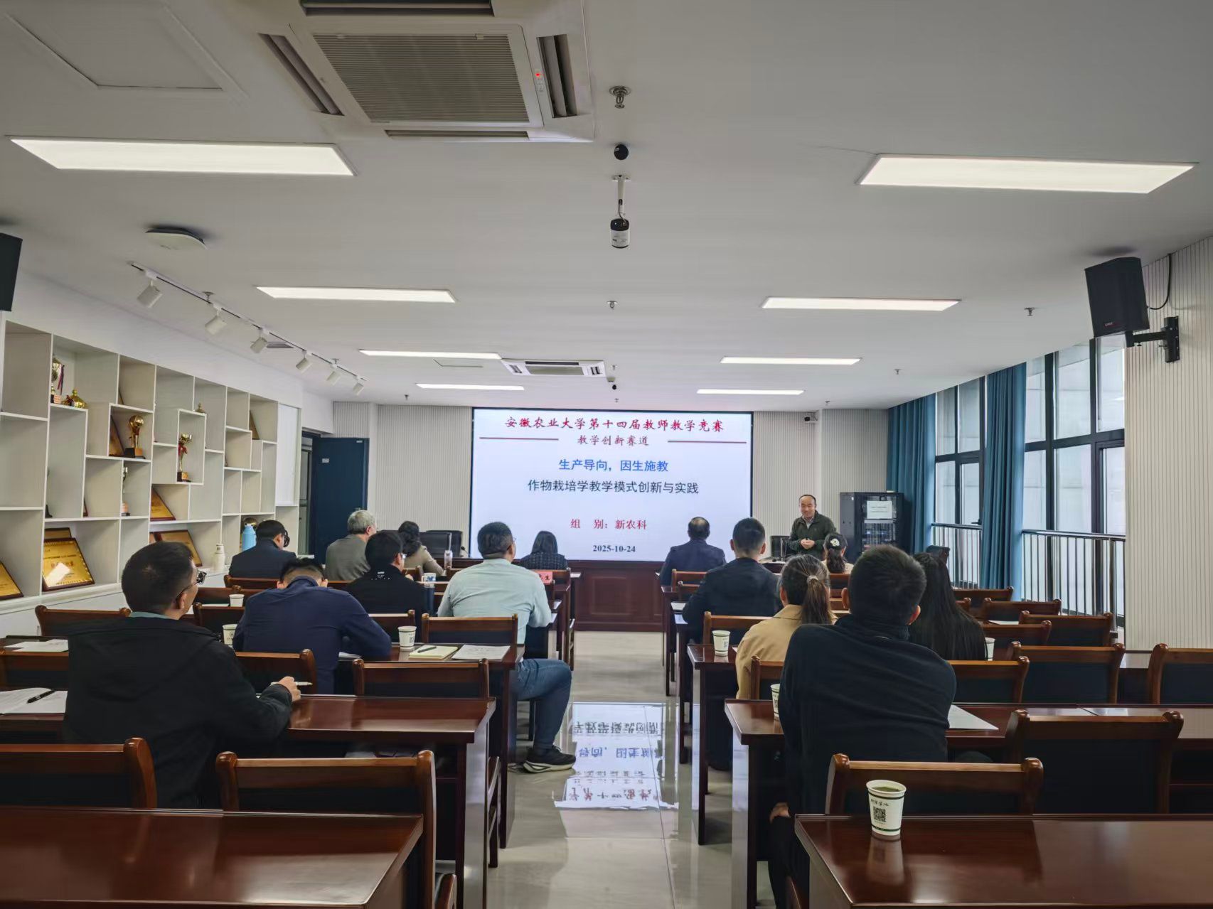 2025年10月24日下午,农学院2025年教学创新比赛在朝阳楼202举行。第四届全国高校教师教学创新大赛二等奖樊冬梅副教授、安徽省级教学创新大赛二等奖张文静教授、校督导组郑文寅教授、院督导组张文明副教授应邀担任评委专家。学院党政领导与近5年新进青年教师现场观摩,会议由教学副院长卢杰主持。