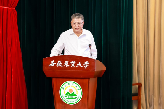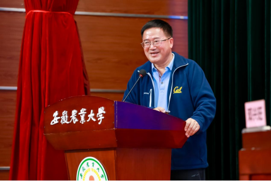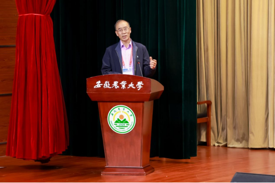 本网讯 2025年11月1日下午,中国作物学会在安徽农业大学举办了第七届中国作物学会会员日活动,本次活动结合安徽农业大学“神农大讲堂”开展。美国科学院院士、北京大学现代农业研究院院长邓兴旺教授,中国工程院院士、中国作物学会副理事长、中国水稻研究所胡培松研究员,中国科学院遗传与发育生物学研究所刘志勇研究员,安徽农业大学党委常委、副校长江海洋教授,安徽袁粮水稻产业有限公司董事长张永玲以及来自全国各大农业大学、科研院所的科技工作者,学会会员,企业界人士以及安徽农业大学的师生等550人现场参加活动,13.7万人次通过中国知网、光明网在线观看直播。活动由中国作物学会秘书长、国家小麦产业技术体系首席科学家、中国农业科学院作物科学研究所刘录祥研究员主持。