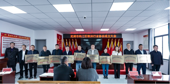 大会由鸠江区农业农村韩刚局长主持,会议选举产生了第一届理事会成员。芜湖市穗丰粮食购销有限公司当选为会长单位,安徽农业大学农学院、芜湖扬子农村商业银行、中国人寿财产保险股份有限公司当选为顾问单位,安徽佳谷豆食品有限公司等10家公司当选为副会长单位,益海嘉里(安徽)粮油工业有限公司当选为秘书长单位。孙安平副书记为协会揭牌,蔡金平副区长向当选的会长、副会长、秘书长及顾问单位授牌。