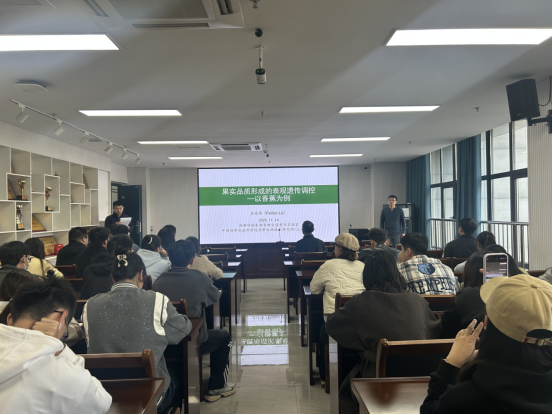 吕培涛研究员以 “热带作物果实品质形成的表观遗传调控 —— 以香蕉为例”为题展开分享。报告中,他结合自身深耕热带作物研究的丰富经验,系统阐述了香蕉等园艺作物重要性状形成与调控的核心机制,重点解析了表观遗传调控在热带作物果实品质塑造中的关键作用,并介绍了其团队在植物ENCODE大数据创建与整合方面的突破性进展。作为在国际农学领域颇具影响力的专家,吕培涛研究员已以第一作者或通讯作者身份在《Nature Genetics》《Nature Plants》《Nature Communications》《Plant Cell》等顶级期刊发表论文50 多篇,他在报告中分享的研究思路、实验设计技巧,为在场师生提供了宝贵的学术借鉴。