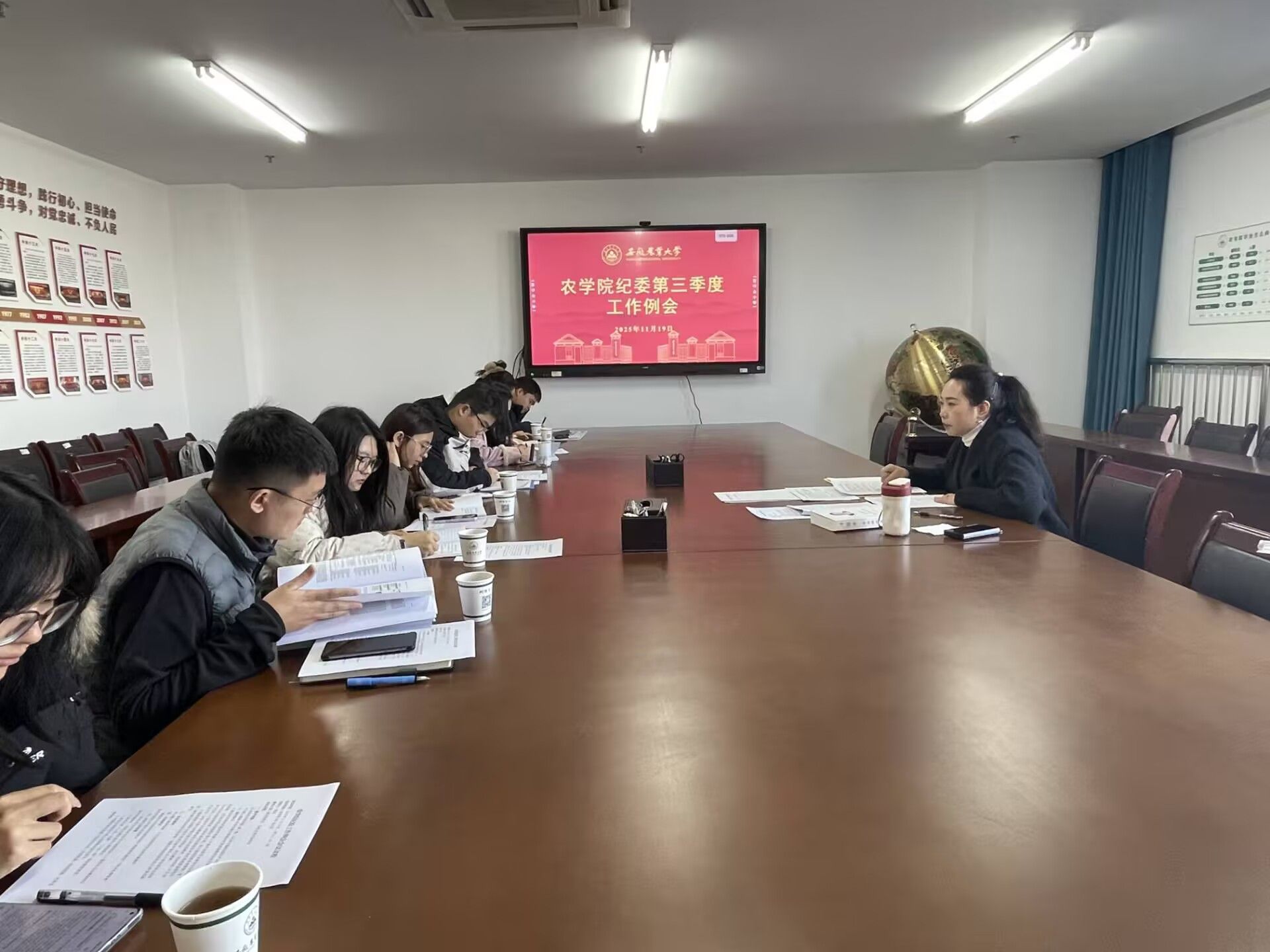 本网讯 11月19日上午,农学院在朝阳楼206会议室召开2025年第三季度纪检工作例会。学院纪委委员、各党支部纪检委员参会,会议由学院党委副书记、纪委书记柳洁主持。