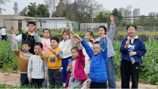 随后,研学队伍移步农萃园,沉浸式开启农耕实践探索。在志愿者与研究生学长学姐的悉心引导下,学子们近距离观察小麦的生长态势,直观体悟作物从萌芽到成熟的生命历程;现场观摩作物栽培的实操流程,聆听学长学姐详解植物生长的环境调控、田间管理的核心要义。孩子们俯身观察、亲手触摸、踊跃发问,在理论与实践的交融中,深刻洞悉植物生长的规律,真切体悟农耕劳作的艰辛与粮食的来之不易,将“谁知盘中餐,粒粒皆辛苦”的道理内化于心。定格春日研学的美好瞬间,让农耕文化的种子在少年心中生根发芽。