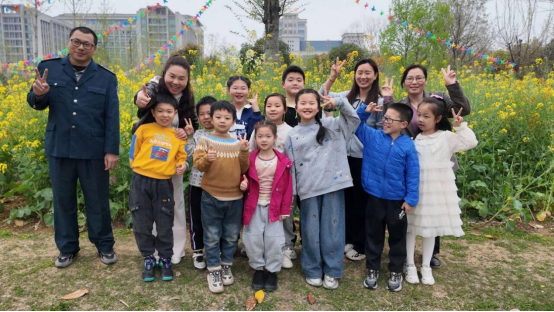 学院学生党员、入党积极分子、青年团员们积极发挥模范带头作用,踊跃报名、积极规划研学路线、认真讲解。研学伊始,学子们于学校南门整列集合,在志愿者的引领下,循着春日校园的脉络徐徐前行。队伍途经勤学楼,于琅琅书声中浸染书香底蕴;拜谒神农像,在先贤精神中感悟农耕初心;漫步操场,于活力景致中感受校园生机。志愿者们沿途细致讲解草木之名、花木之性,将校园的一草一木化作鲜活的自然课堂,让孩子们在移步换景间,感知自然之趣与校园之韵。行至智慧广场,七彩油菜花田如锦缎铺展,志愿者们娓娓道来安徽农业大学的百年办学文脉与耕读传承,带领学子们于花海间合影留念。