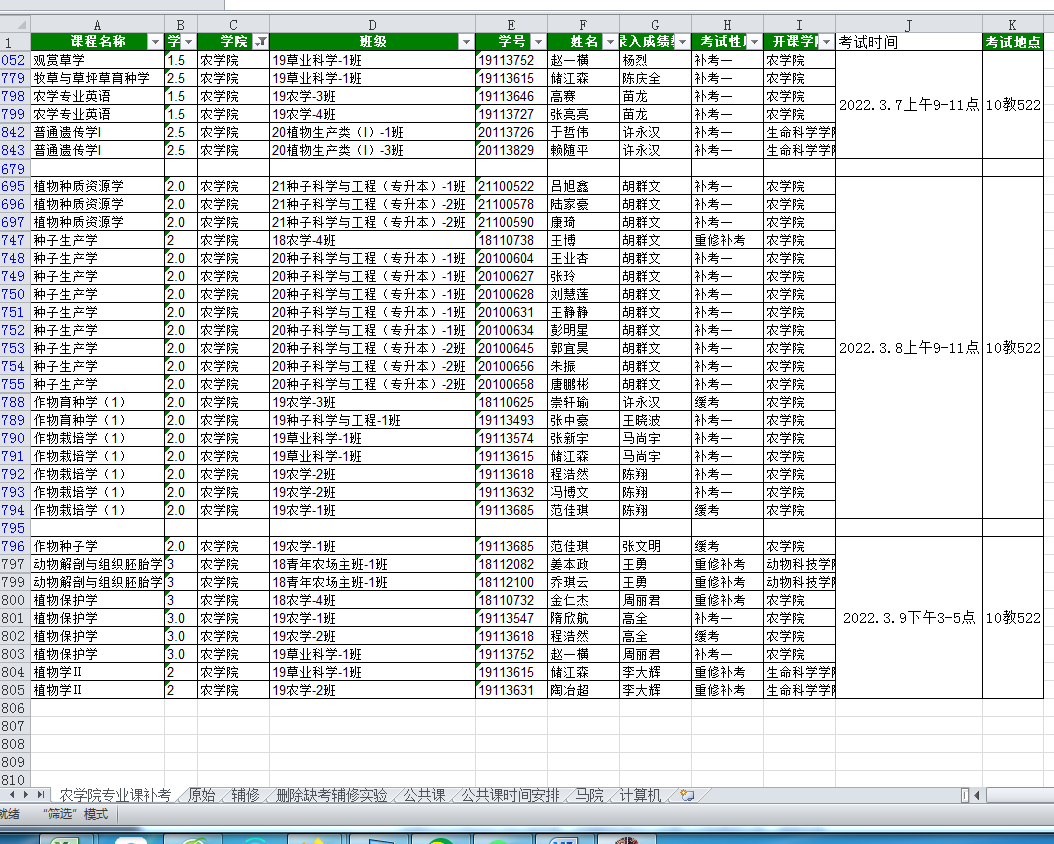 农学院开学专业课补考