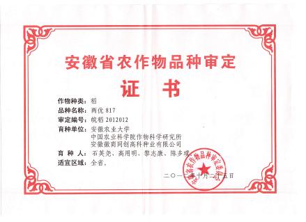 MicrosoftInternetExplorer402DocumentNotSpecified7.8 磅Normal0由安徽农业大学、中国农业科学院作物科学研究所、安徽徽商同创高科种业有限公司选育,亲本为广选S/R817。审定编号:皖稻2012012。