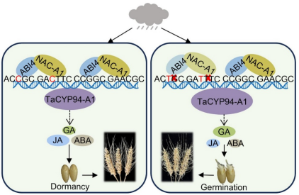 小麦生产安全直接关系到全球粮食安全。在小麦驯化进程中,为追求整齐一致且较高的出苗率,弱休眠性状被选择并保留下来。然而,弱休眠往往会造成收获季节高湿条件下穗发芽的发生,严重影响小麦品质、产量、播种质量以及食品安全。因此,鉴定种子休眠相关基因并阐明其调控机制,将有助于培育具有适度休眠特性的小麦品种,从而减轻穗发芽损失。