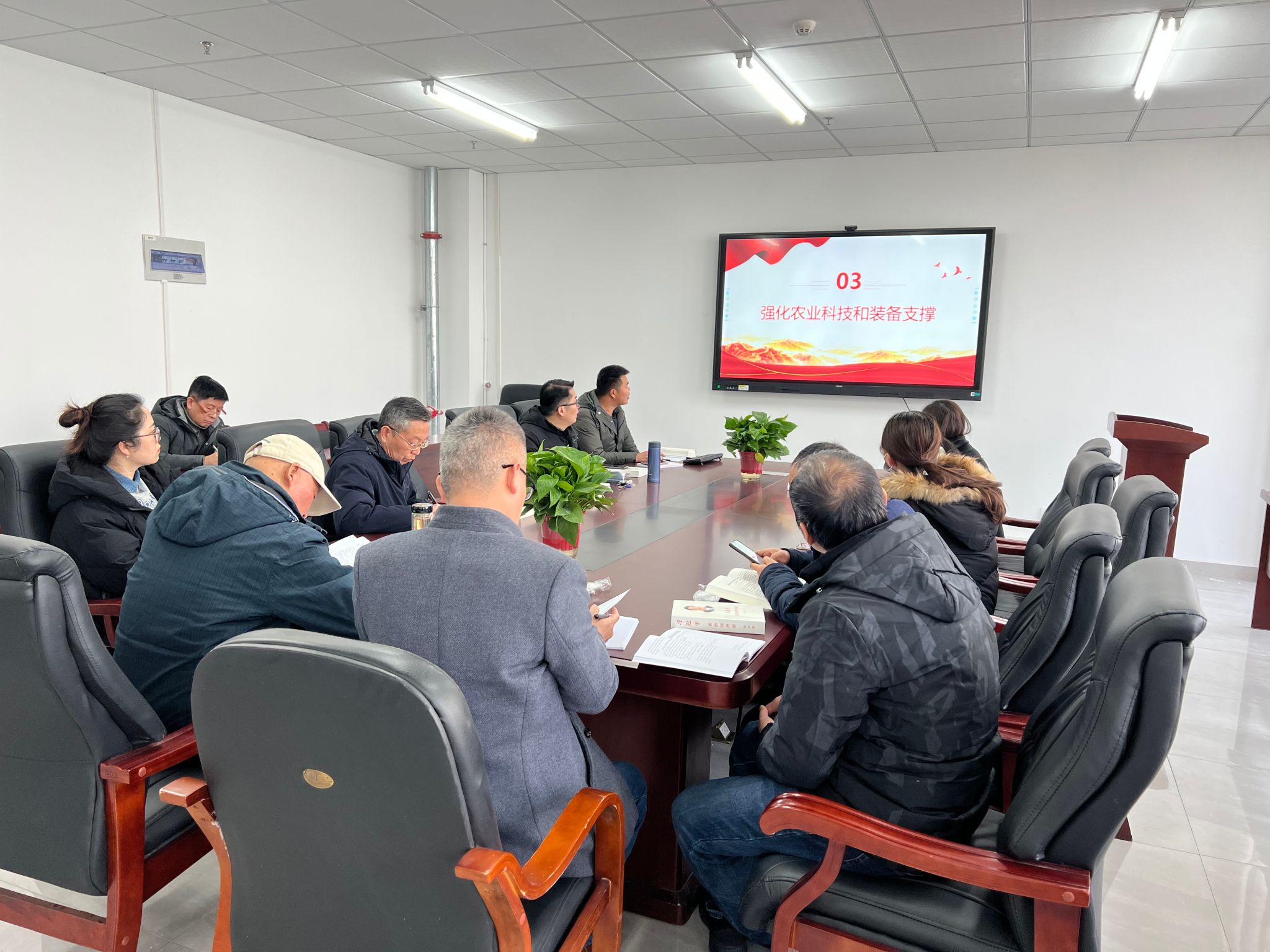 会上,车钊同志做了2023中央一号文件解读专题党课。从抓紧抓好粮食和重要农产品稳产保供、加强农业基础设施建设、强化农业科技和装备支撑、巩固拓展脱贫攻坚成果、推动乡村产业高质量发展、拓宽农民增收致富渠道、扎实推进宜居宜业和美乡村建设、健全党组织领导的乡村治理体系和强化政策保障和体制机制创新等9个方面,结合支部教师业务特点,对2023年中央一号文件精神进行详细解读。结合文件内容,支部委员何海兵同志和张璨同志分别领学了《习近平谈治国理政》第四卷:真抓实干做好新发展阶段“三农”工作和努力实现高水平科技自立自强。