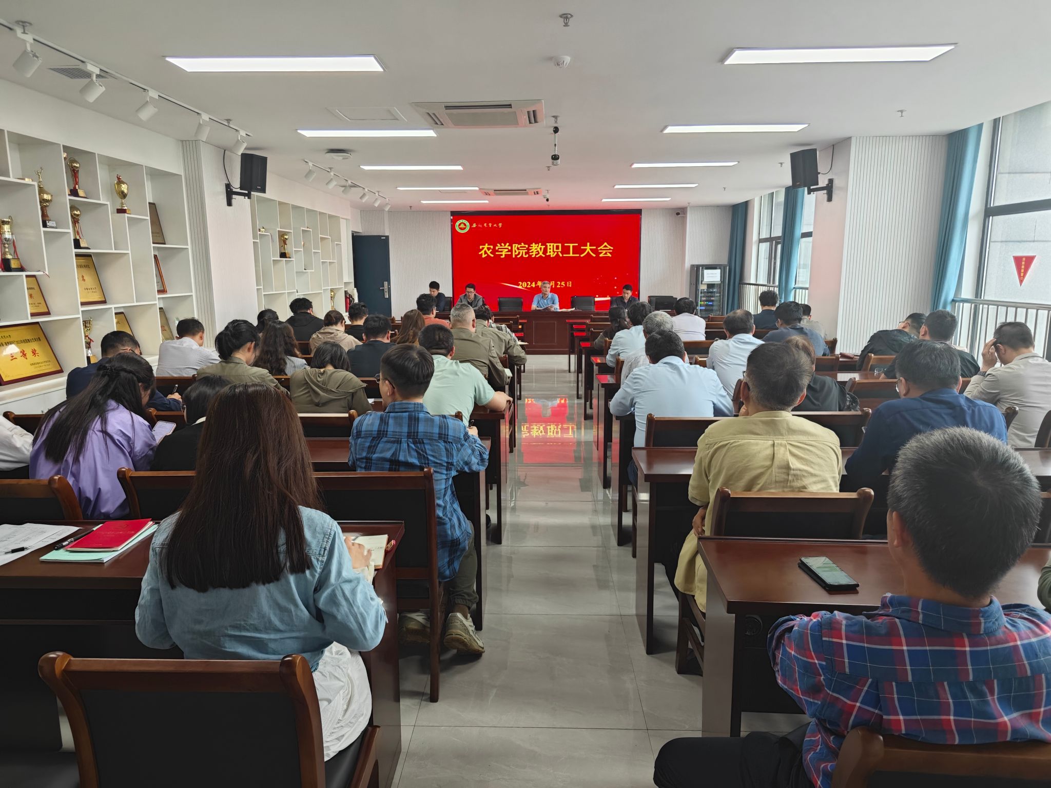 会议要求,全体党员干部和教职工要深刻认识党纪学习教育的重大意义,切实增强纪律意识和规矩意识,保质保量开展党纪学习教育。一要突出重点,在深化学习上见到新成效。要牢牢把握党纪学习教育目标要求,以学习贯彻今年新修订的《条例》为重要抓手,用党规党纪校正思想和行动。二要压实责任,在示范带头上展现新面貌。班子成员要切实履行“一岗双责”,坚持以上率下、带头学习,引导所在支部高质量完成党纪学习教育任务。各党支部书记要担当作为,加强对本支部党纪学习教育的组织领导、谋划推动,确保各项学习任务落到实处、取得实效。三要立足职能,在推动工作上实现新突破。要把开展党纪学习教育同做好本职工作紧密结合起来,同推进落实全年重点工作结合起来,同本科教育教学审核评估工作结合起来,同配合好省委巡视工作结合起来,切实以高质量工作成果检验党纪学习教育成效,为“办大办好办强”安徽农大提供坚强政治保障。