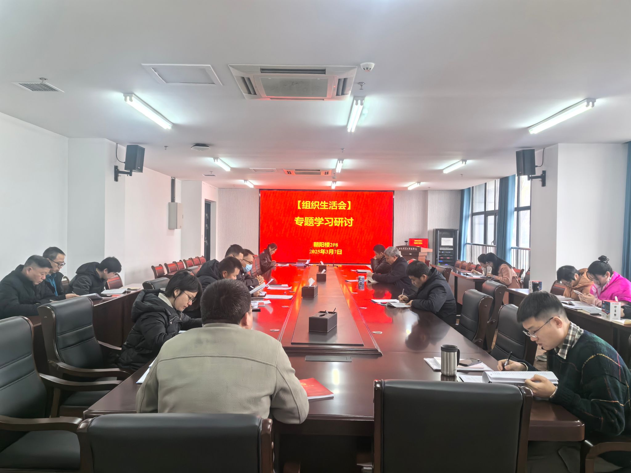 本网讯 为深入贯彻习近平新时代中国特色社会主义思想,高质量开好2024年度组织生活会,3月7日上午,农学院教工第一和第二党支部在朝阳楼208开展2024年度组织生活会会前集中学习研讨,会议由党支部书记黎珉和陈翔共同主持,全体支部党员参会。