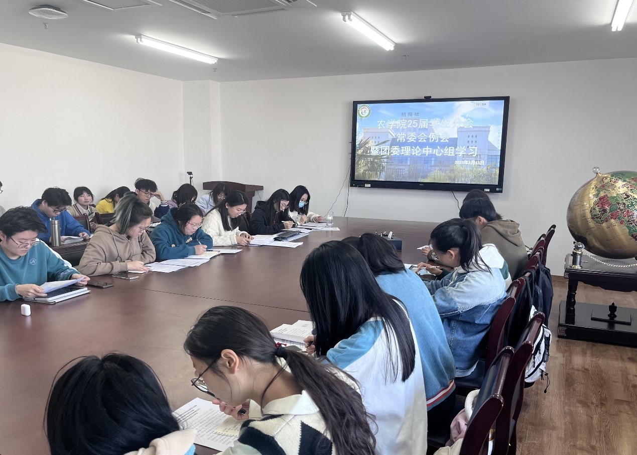 本网讯 3月13日中午,农学院团委理论中心组(扩大)会议暨学院学生分会常委会例会在朝阳楼206会议室召开。会议由学院团委负责人范宇主持,学生分会主席团及各部门部长参加本次会议。