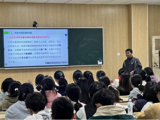 本网讯 为了帮助新生更好地了解所学专业,明晰专业目标,规划大学生活,农学院分别于10月10日晚在勤学楼316和11月23日晚在博学楼319召开了种子科学与工程专业和农学专业的教育大会,院党委副书记、纪委书记、副院长吕大鹏、作物育种与种子科学系主任卢杰老师、教工第二党支部书记黎珉老师、农学系主任陈翔老师、农学专业班主任张强强老师和郑宝强老师、19级种科专业胡琼、19级农学专业徐雨薇和胡雨喆以及22级全体新生参加了活动,专业教育大会由22级新生辅导员陶帅主持。