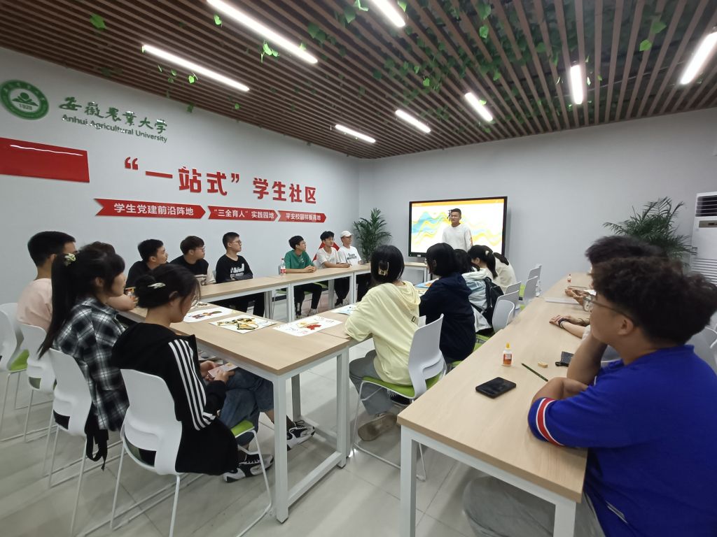 本网讯 9月15日晚,在校“一站式”学生社区服务中心,农学院“一站式”学生社区系列第三场“种子粘贴画”活动正如火如荼地开展着。农学院专职辅导员陶帅、团支部书记郑琴、学生分会同学、2022级新生代表参加此次活动。
