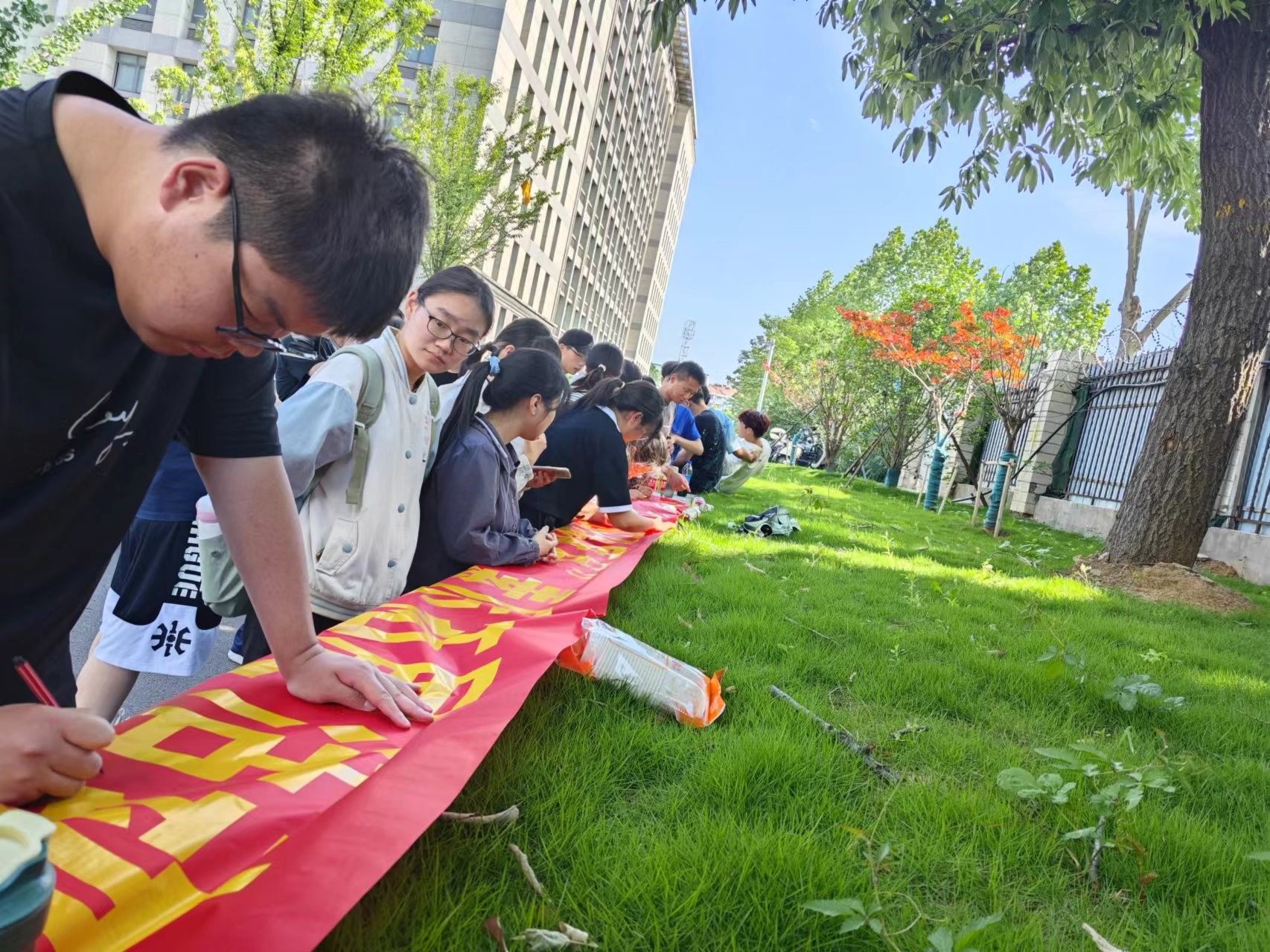 运动会以班级团支部为单位展开,共分为三个游戏环节:正话反说、积少成多、取向狙击。同学们在奔跑、跳跃中感受运动的乐趣,现场氛围热烈,欢声笑语回荡在朝阳楼。最后是“我希望”留言环节,全体学生在横幅上留下自己对未来的期待与憧憬,“我希望自己永远赤诚向上”、“我希望一直热爱生活”……