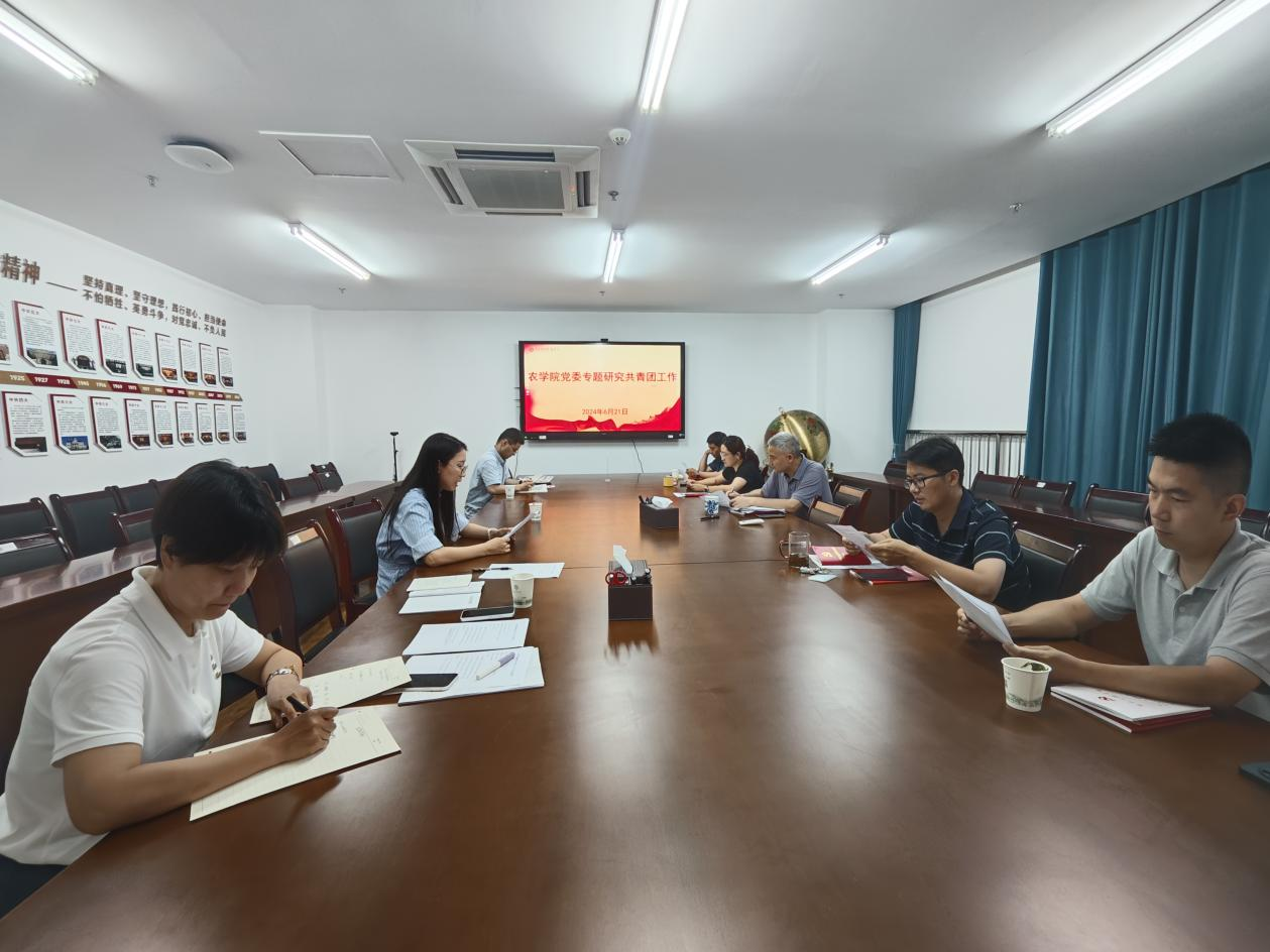 本网讯 为进一步加强学院党委对共青团和青年工作的领导,深化共青团改革、坚持从严治团,促进学院共青团工作迈上新台阶,6月21日下午,农学院在朝阳楼206会议室召开党委会专题研究共青团工作,农学院党委委员出席会议。