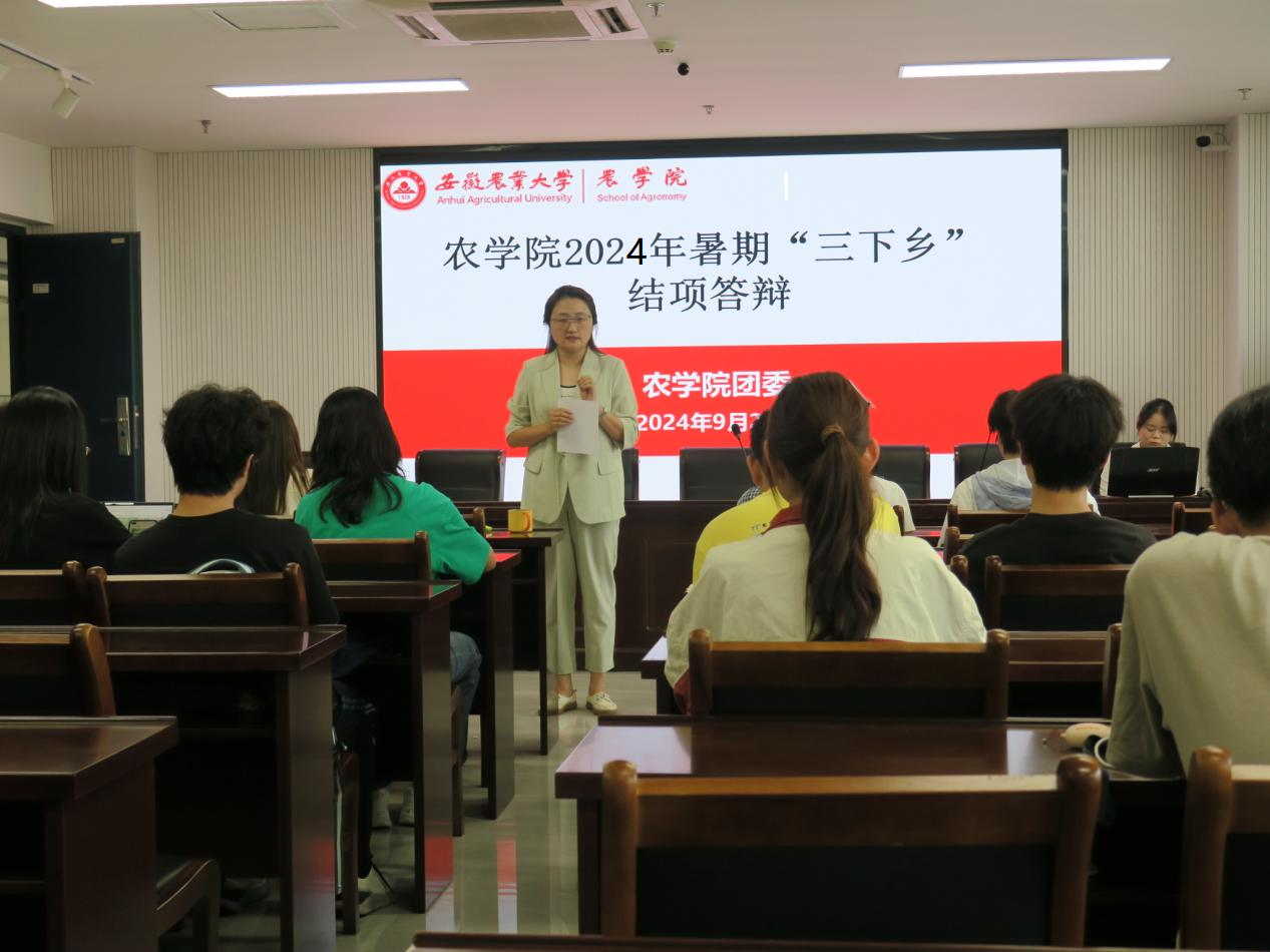 本网讯 为深入学习宣传贯彻习近平新时代中国特色社会主义思想,结合《农学院暑期“三下乡”活动实施方案》要求,9月25日下午,农学院在朝阳楼202会议室开展2024年暑期“三下乡”社会实践结项答辩。农学院党委副书记冯峰出席会议,答辩评委及学生代表参加会议。