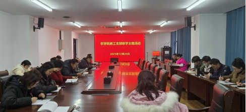 本网讯 12月24日下午,农学院教工第一和第二党支部在朝阳楼208会议室开展主题学习研讨会。会议由教工第二党支部书记黎珉主持,全体党员教师参会。