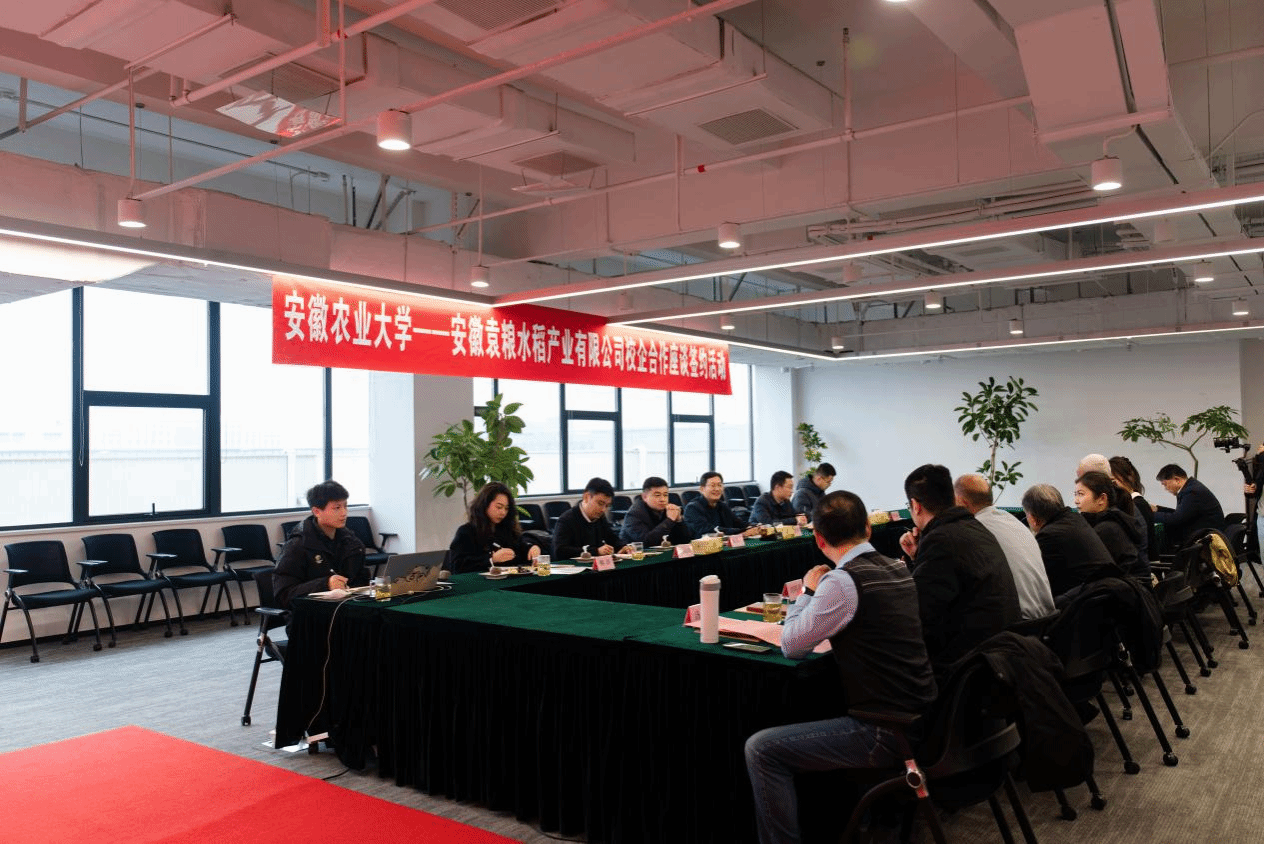 本网讯 12月24日下午农学院与校友企业安徽袁粮水稻产业有限公司企合作座谈及签约活动在袁粮公司正式举行。党委书记张庆亮、芜湖市原市委常委、副市长王沧江、长丰县委书记李孝鸿及袁粮公司董事长张永玲、执行董事长王珊珊等出席活动学校党政办公室、社会合作处、农学院以及长丰县有关部门主要负责同志参加活动。